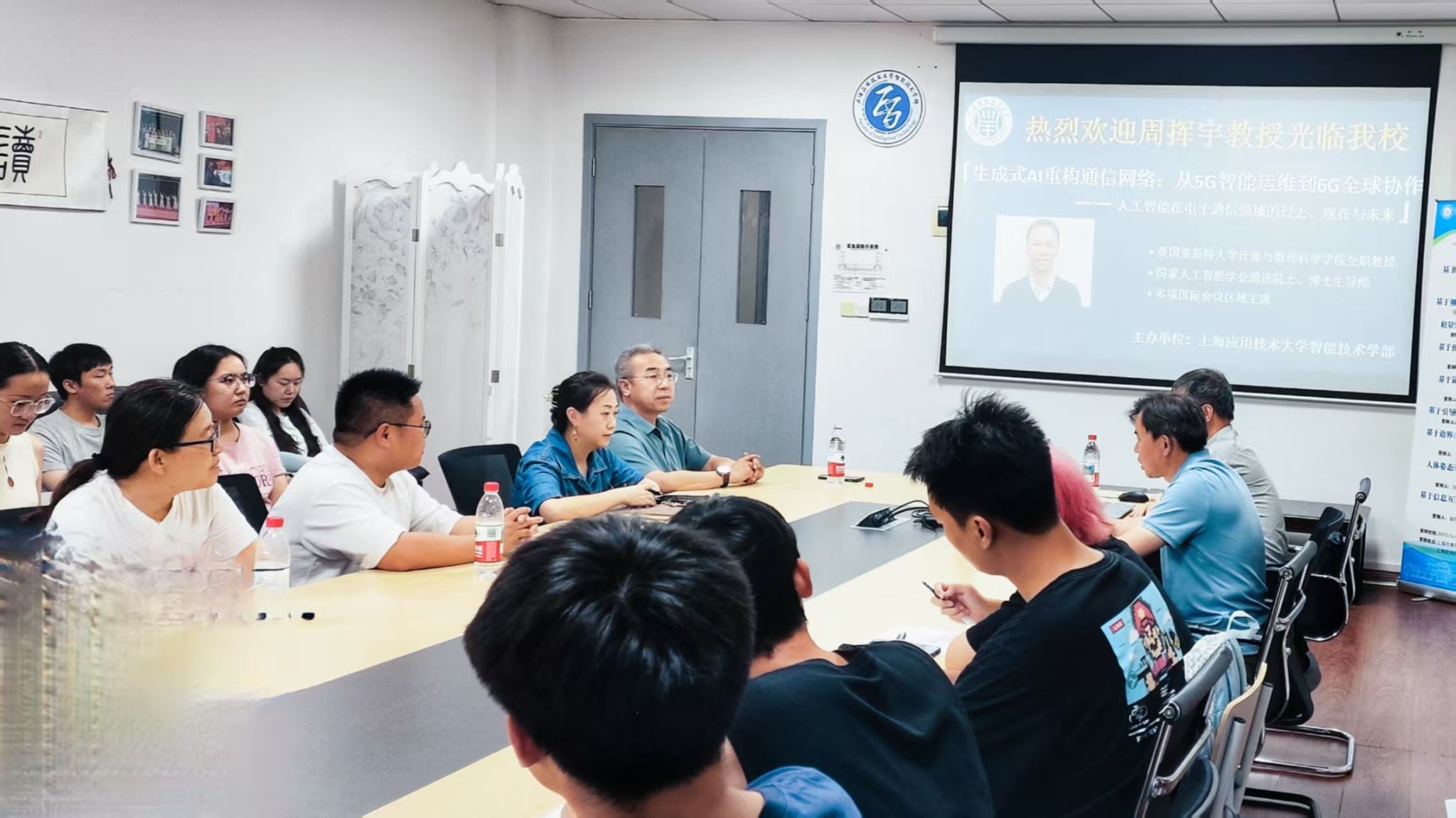 2025年7月4日下午,智能技术学部在第七学科楼A318成功举办了题为“生成式AI重构通信网络:从5G智能运维到6G全球协作”的学术讲座。讲座特邀英国莱斯特大学计算与数理科学学院周挥宇教授担任主讲人,智能技术学部书记杨瑞君、研究生学生工作负责人赵凤霞等领导与教师代表,以及众多研究生共同参加了此次讲座。活动由曹国刚老师主持。