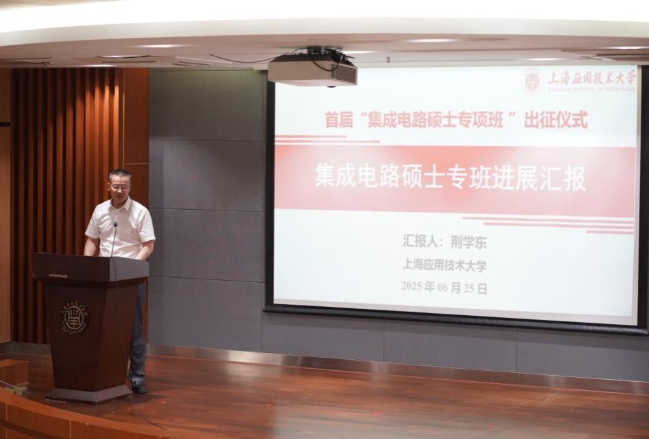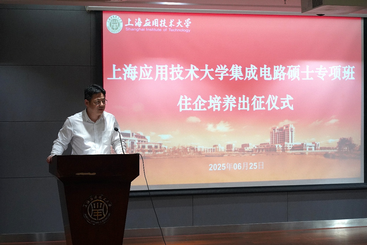 6月25日下午,上海应用技术大学集成电路硕士专项班“住企培养出征仪式”圆满举行,标志着首批专项班研究生正式入驻合作企业,开启“理论+实践”深度融合的研究生联合培养新模式。活动由智能技术学部常务副主任裴颂文教授主持。