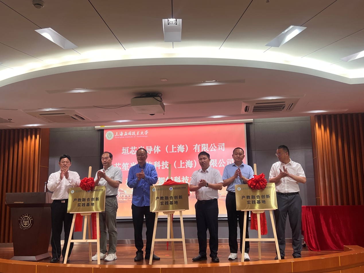 裴颂文、姜黎、毛祥东、曾艳飞、陈刚、荆学东(自左向右)共同为集成电路专项班“产教融合创新实践基地”揭牌。