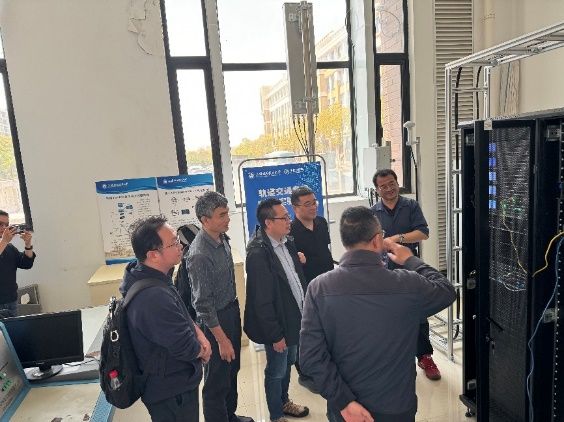 邹劲柏陪同专家参观 5G/5G-R 产教融合创新平台,详细介绍 5G-R 基站系统的使用现状、规划。之后还参观了轨道交通综合实验基地。
