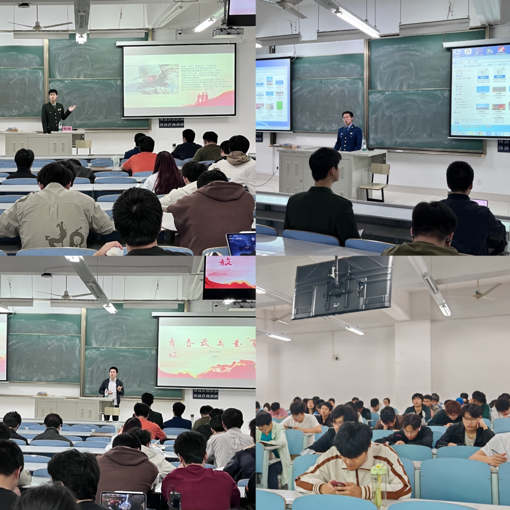 会上,陈翔老师结合身边真实案例,为同学们全面且深入解读了征兵政策,鼓励同学们积极参与征兵报名,在军队中锤炼自我,为国防事业贡献力量。陈老师指出,参军入伍不仅是履行国防义务,更是个人成长的“加速跑道”,希望同学们把握机遇,在军营中锤炼钢铁意志,实现个人价值与家国情怀的统一。