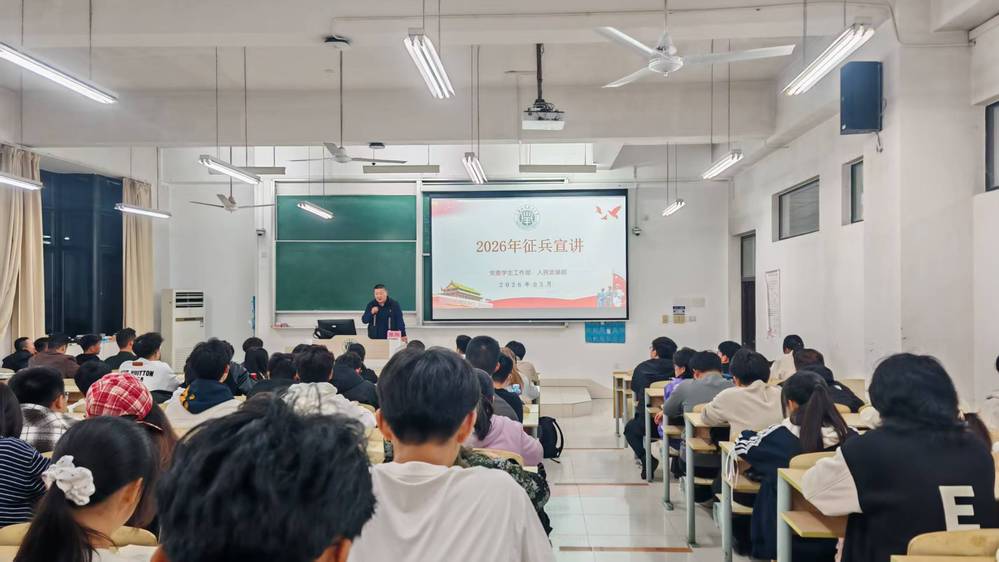 宣讲会上,陈翔老师围绕“科技兴军、政策解读、优待措施、报名准备”四个方面展开系统讲解,旨在帮助同学们详细了解征兵条件、入伍流程、学业保障及退役优待政策等相关信息,引导学生厚植家国情怀,鼓励青年学子携笔从戎、献身国防,将个人成长融入强国强军事业。