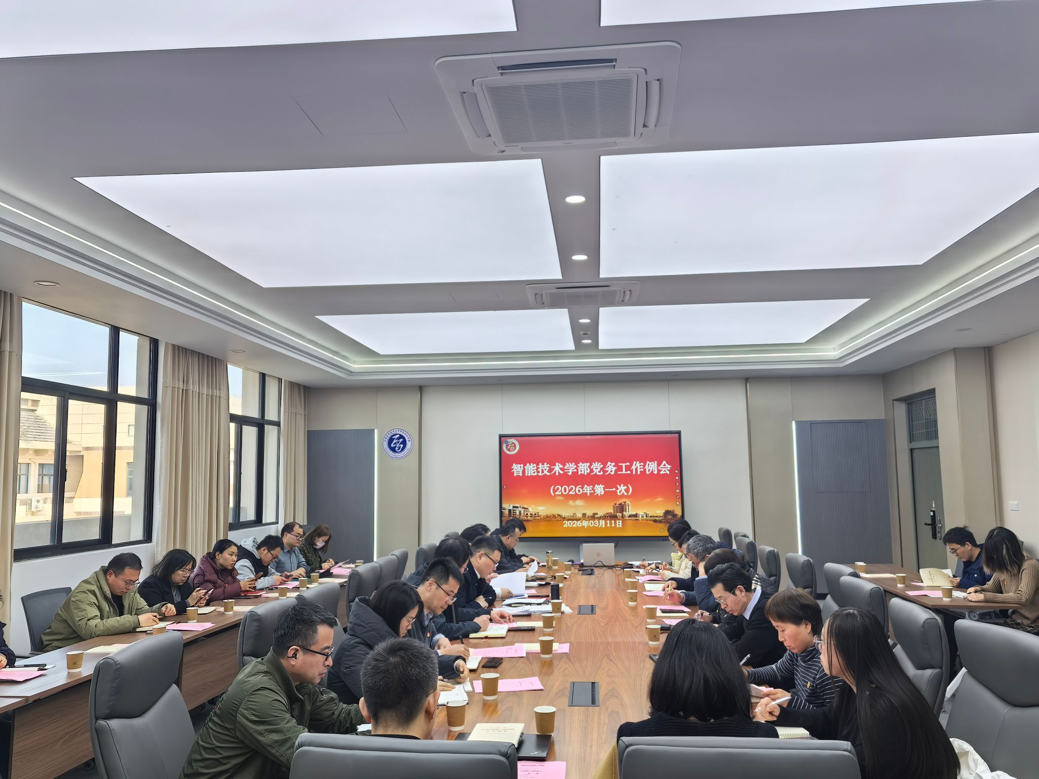 3月11日,智能技术学部在一科A407会议室召开2026年第一次党务工作例会,学习贯彻习近平总书记关于树立和践行正确政绩观学习教育的重要讲话和重要指示精神,传达学习上级党委有关会议精神,部署学部学习教育工作,同时就新学期党务工作要点和重点内容开展培训。学部全体党委委员、班子成员和各党支部书记参加会议。学部党委书记陈雷主持会议。