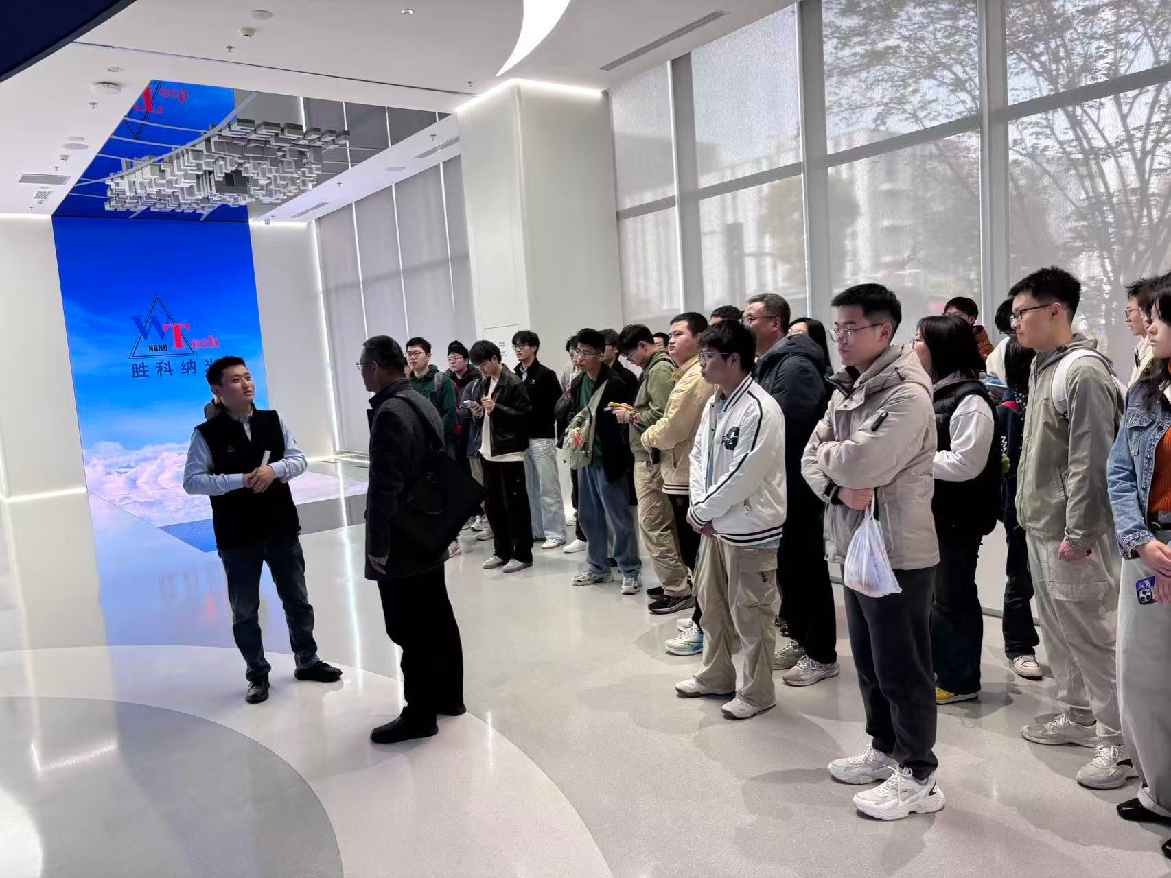 抵达企业后,师生一行首先在工作人员的引导下参观了企业展厅及尖端分析实验室。通过近距离观摩高精尖半导体检测设备,了解芯片失效分析、材料分析等核心业务的全流程,同学们对半导体产业链后端支撑环节有了直观而深刻的认识,现场学习氛围浓厚。