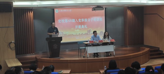 典礼上,本次入党积极分子学员代表韩浩发表了感言,他表示将以此次初级党校培训为契机,认真学习党的理论知识,积极参加实践活动,不断提升自己的政治素质和业务能力,在上应大的学习工作生活中的锻炼中绽放自己的青春,为成为一名合格的共产党员而不懈努力。
