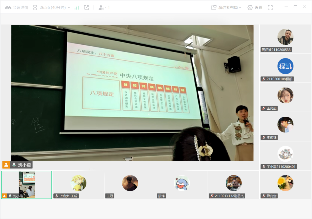 党课伊始,牛亏环通过“徙木立信”的典故引出本次党课的主题“徙木立信,青年何为:深入学习贯彻中央八项规定精神”。通过对党的作风建设历程的回顾,强调作风建设对于党和国家事业发展的重要性。接着,她详细介绍了中央八项规定的主要内容,从改进调查研究、精简会议活动、精简文件简报,到规范出访活动、改进警卫工作、改进新闻报道,再到严格文稿演讲、厉行勤俭节约,每一项规定都结合实际案例进行了深入浅出的解读,让党员们深刻认识到中央八项规定既不是最高标准,更不是最终目的,只是改进作风的第一步,是我们作为共产党人应该做到的基本要求。在党课中,牛教授还列举了一些违反中央八项规定的典型案例,提醒毕业生党员必须保持高度警醒,唯有警钟长鸣,才能在正己修身中坚定信仰、守住初心。
