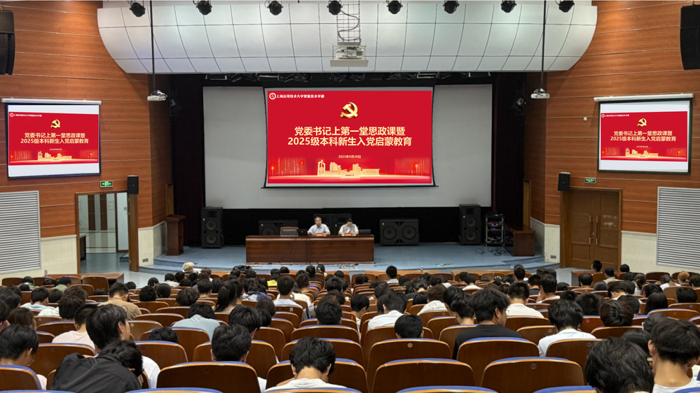 9月30日下午,智能技术学部党委书记“第一堂思政课”暨2025级本科新生入党启蒙教育在图书馆报告厅举行。学部党委书记杨瑞君出席会议,学部研究生组学生工作负责人赵凤霞主持会议,全体2025级本科新生团员、专职组织员欧阳丹丹、学生工作办公室主任邓士杰及相关辅导员到场参加,其余2025级本科新生线上参会学习。