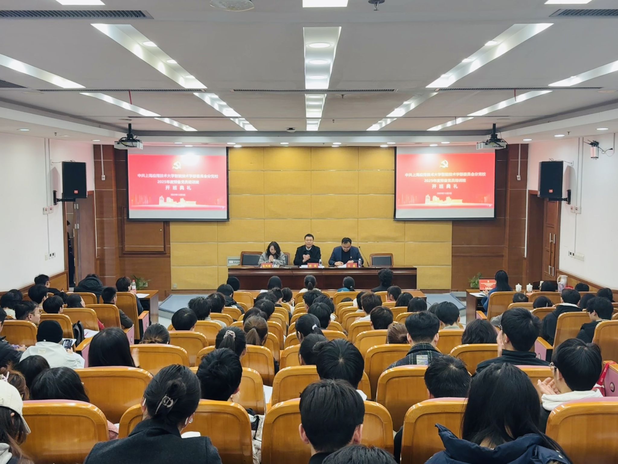 12月5日下午,中共上海应用技术大学智能技术学部委员会分党校2025年度预备党员培训班开班典礼在图书馆B102报告厅隆重举行。学部党委书记、分党校校长兼教学管理委员会主任陈雷;智能制造组学工负责人、分党校教学管理委员会副主任王震;研究生组学工负责人、分党校教学管理委员会副主任赵凤霞出席典礼。来自学部2024年12月、2025年5月、2025年11月三批新发展的164名预备党员参加典礼。典礼由赵凤霞主持。