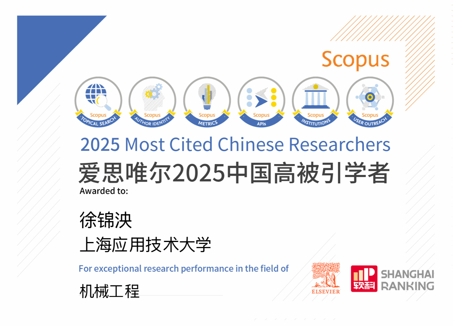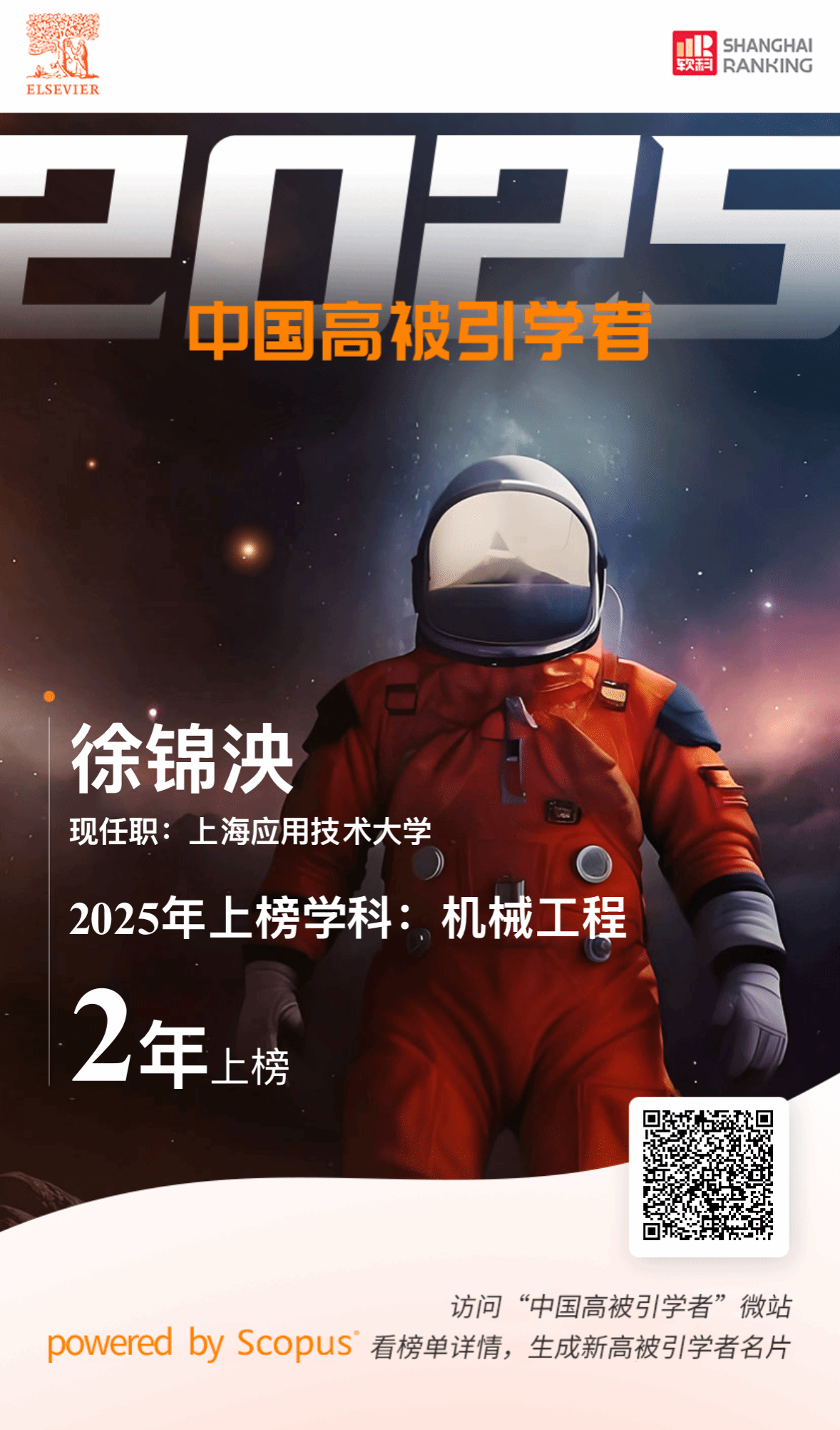 此次上榜的徐锦泱教授深耕航空航天高性能切削技术、智能制造工艺与刀具设计等多个研究领域,科研成果丰硕。其主持国家级、省部级科研项目16项,发表学术论文170余篇,其中第一/通讯作者SCI期刊论文90余篇,论文总引用超6000次,H指数44,还拥有20余项授权国家专利,同时在多个国际学术组织担任重要职务,兼任多本SCI期刊主编、副主编或编委,曾斩获多项教学与科研奖项,连续入选爱思唯尔中国高被引学者、斯坦福大学全球前2%顶尖科学家等榜单,学术造诣深厚。