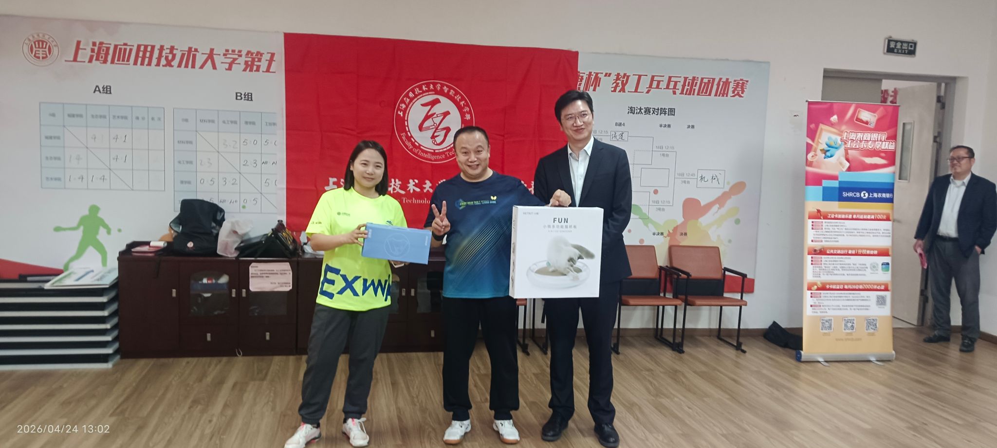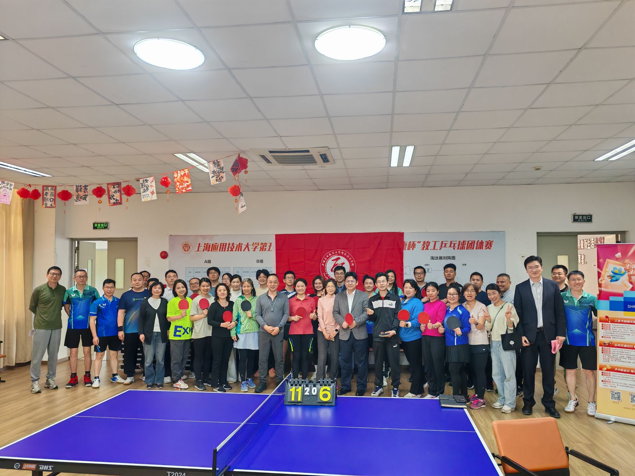 为丰富教职工业余文体生活,涵养健康身心,凝聚团队向心力,充分展现学部教职工积极进取、奋发有为的精神风貌,2026 年 4 月 24 日下午,智能技术学部成功举办教工乒乓球比赛。本次赛事得到上海农商银行柘林支行鼎力支持,学部教职工踊跃报名、积极参赛,以球会友、切磋技艺,携手打造了一场活力满满的文体盛会。