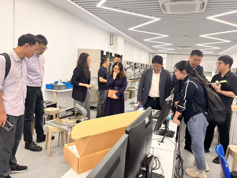 在深圳职业技术大学机电工程学院,调研组重点了解其产教融合特色做法——该校将智能制造企业真实项目转化为实训课题、“企业导师驻校带教”等模式,为学部优化“三三制”培养体系、强化智能制造实训环节提供参考。学院还与华为、大族激光、TCL、汇川技术等行业龙头企业建立长期稳定合作关系,形成 “订单班”“产业学院”等多元合作模式。双方明确将开展师资互训与学生顶岗实训合作,推动实践教学与产业需求衔接。座谈交流环节后,调研组重点参观考察了自动化技术实训室和机电一体化技术实训室。