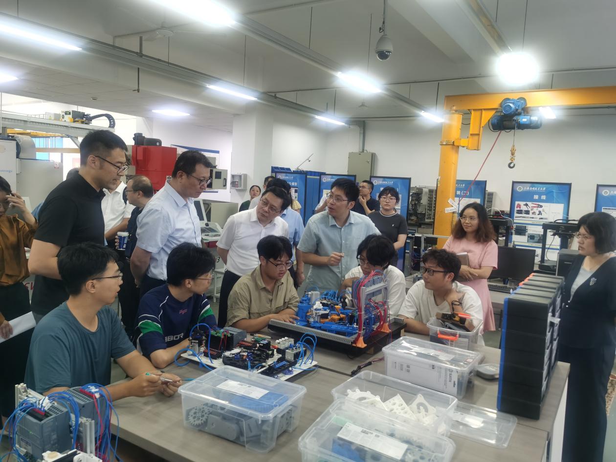 9月16日下午,上海市教委相关领导在上海应用技术大学校长汪小帆、副校长毛祥东的陪同下,莅临智能技术学部,考察学部智能制造工程专业获批市教委综改试点后产教融合教学的改革进展。