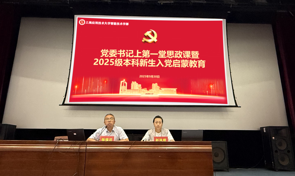 9月30日下午,智能技术学部党委书记“第一堂思政课”暨2025级本科新生入党启蒙教育在图书馆报告厅举行。学部党委书记杨瑞君出席会议,学部研究生组学生工作负责人赵凤霞主持会议,全体2025级本科新生团员、专职组织员欧阳丹丹、学生工作办公室主任邓士杰及相关辅导员到场参加,其余2025级本科新生线上参会学习。