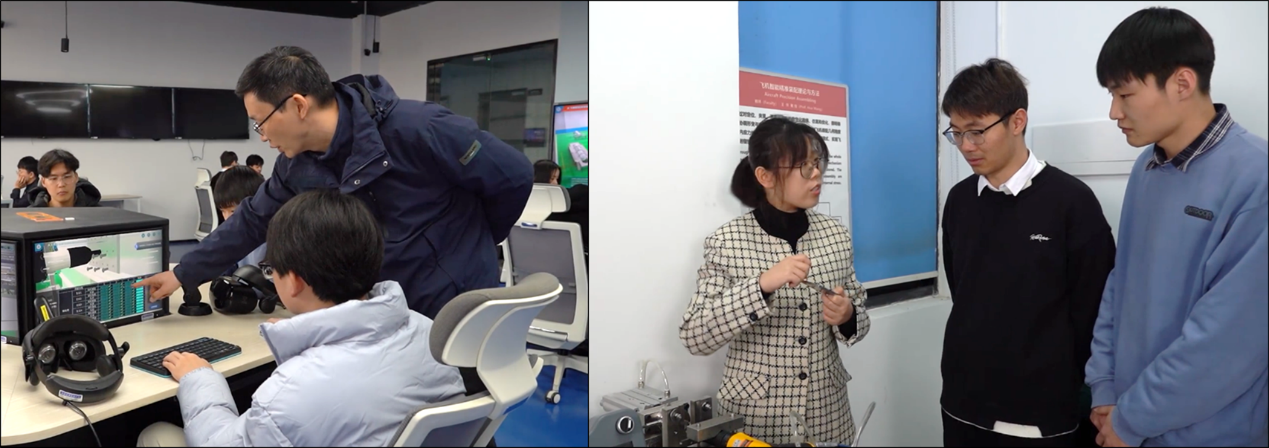 “大飞机项目”推动我国制造业整体水平和竞争力提升,也对高端应用型人才提出新的需求。我校以习近平新时代中国特色社会主义思想为指导,坚持“应用导向、技术创新”的特色定位,秉承“依产业而兴、托科技而强”的办学理念,充分发挥位于上海的地理优势、对接我国大型飞机总装制造的实际需求,基于智能技术学部科研团队的研究成果,开展课程的建设工作和教学实践。课程针对机械设计制造及其自动化专业的培养目标,运用信息化手段开展虚拟仿真实验,通过三维虚拟仿真的形式,将大型飞机铝合金构件的锤铆连接过程真实呈现给学生,让学生在虚拟装配环境中进行锤铆工艺系统软硬件搭建、工艺参数选择、工艺装备选择和铆接接头质量检测等仿真实验操作和理论学习。