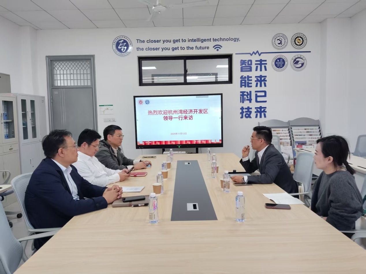 11月13日,上海杭州湾经济技术开发有限公司副总经理翁俊一行到访智能技术学部,就深化校企合作、推动产教融合高质量发展开展专项交流。智能技术学部常务副主任裴颂文、党委书记陈雷、学生工作负责人王震热情接待,双方围绕人才培养、科研转化、平台共建等核心议题展开深入交流。