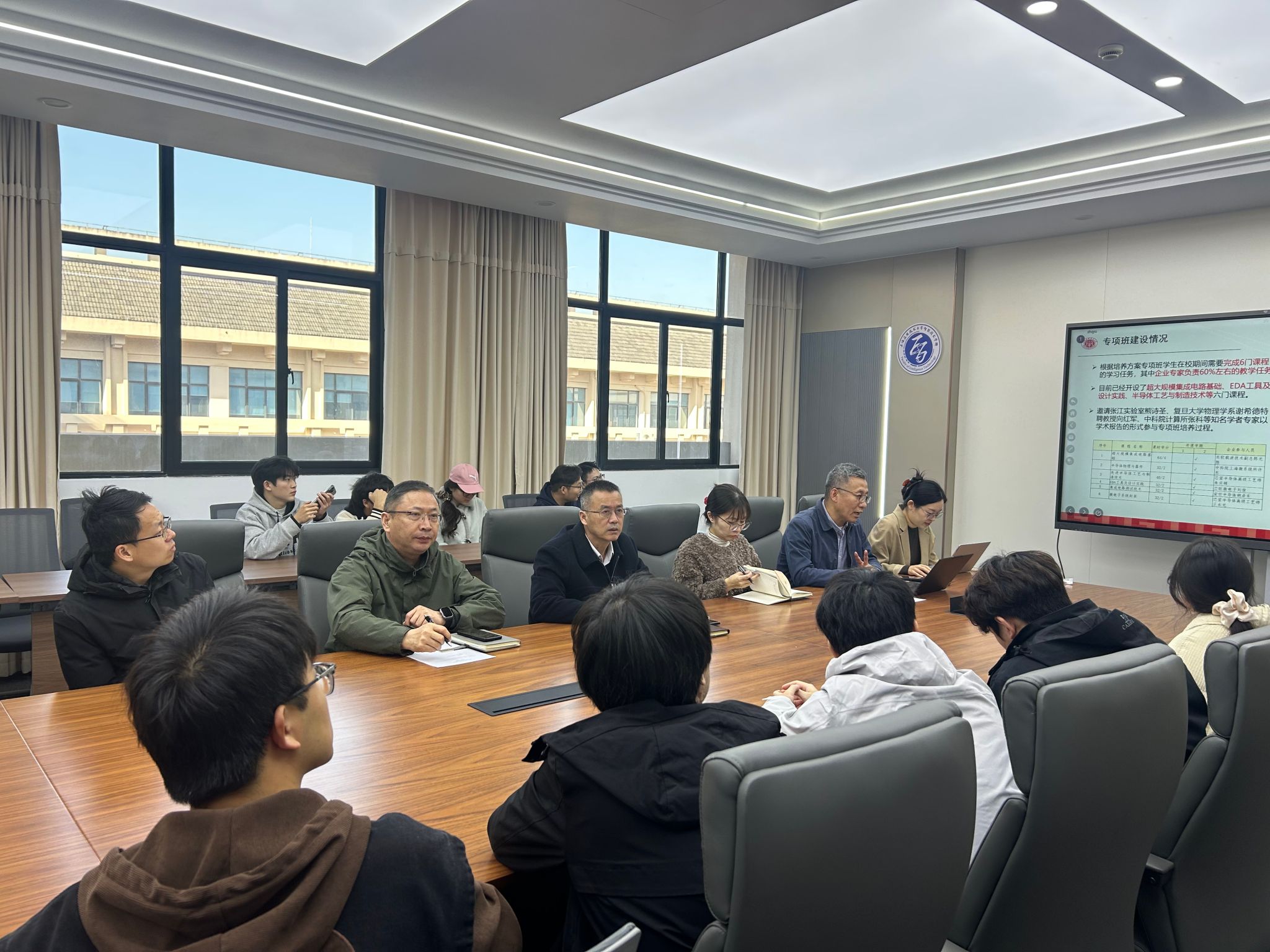 会议伊始,集成电路系系主任于志强就本届专项班的招生情况与培养模式作了详细汇报。他介绍了新一届学生的生源构成、选拔过程以及班级的基本建制,展现了专项班在吸引优秀生源、优化招生机制方面的持续努力。随后,智能技术学部研究生负责人荆学东副主任重点介绍了本届专项班的办学特色与人才培养方案。他围绕课程体系设置、产学研协同育人机制、实践平台建设等方面,阐述了专项班在创新人才培养模式、对接产业前沿需求方面的具体举措与长远规划。