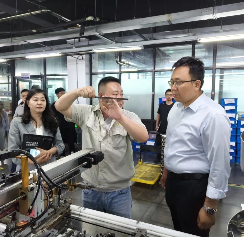 首先,王震一行参观了上海永铭电子股份有限公司企业数字化工厂,了解永铭电子企业概况和校企合作模式。随后,王震一行走进上海朋泰机械科技有限公司参观调研,开展座谈讨论。