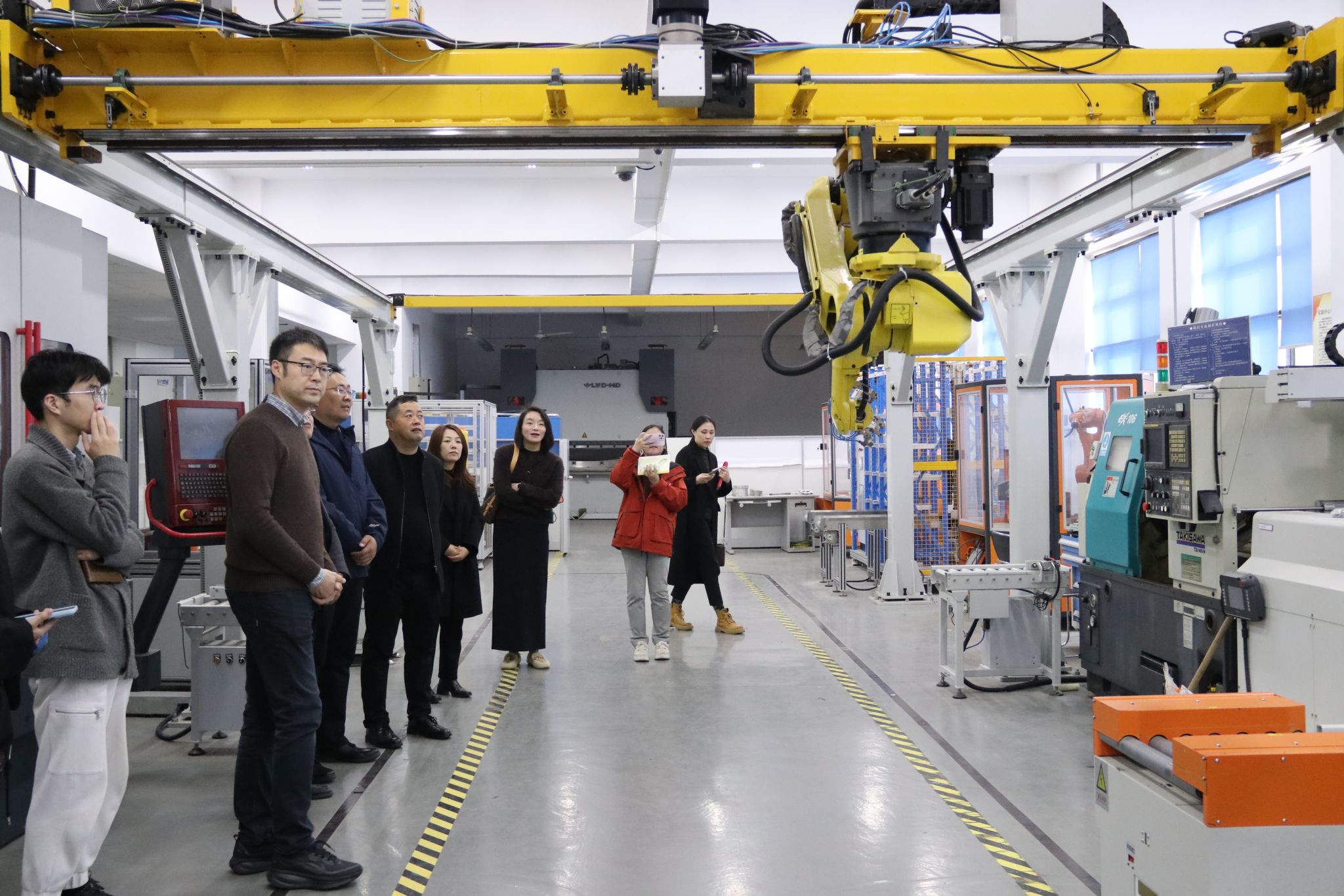 会前,南桥镇与上海交通大学国家大学科技园一行参观了智能制造实验室。智能制造系主任逯代兴向参观嘉宾们展示了实验室的智能仓库系统、学生实训的数控机床与机器人。参观嘉宾们对学部扎实的实践基础给予了高度评价。