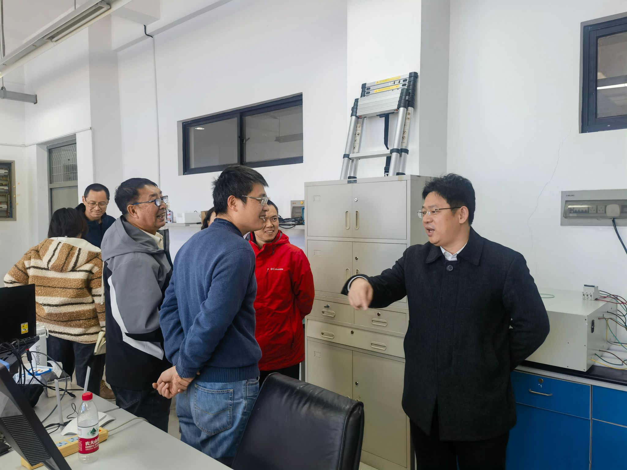 会议结束后,常务副主任裴颂文立即带队,对学部部分重点实验室进行了现场巡查。巡查组实地查看了实验室设备运行、用电安全、化学品存放、消防通道及环境卫生等情况,并就检查中发现的细节问题与现场负责人进行了即时沟通,要求立行立改。