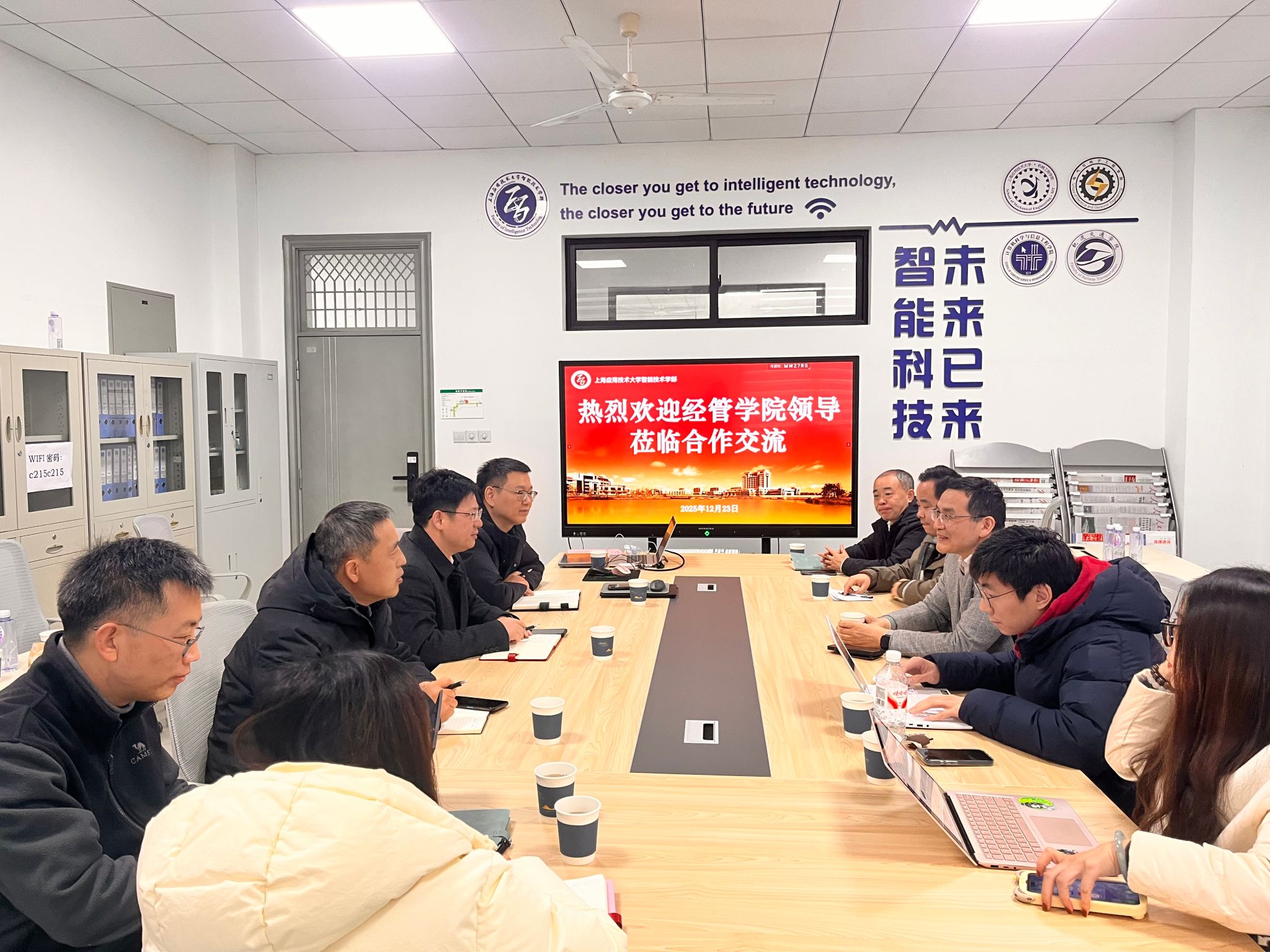为推动学部(院)间资源共享、优势互补,探索跨学科协同育人和应用型人才培养创新路径,2025年12月23日上午,智能技术学部迎来经济与管理学院一行到访开展走访调研。智能技术学部常务副主任裴颂文、党委书记陈雷,学位与研究生工作负责人李宁洲、科研专项负责人曹开田、教学专项负责人安学娜、王栋及党政办公室负责人马轻轻出席座谈会,与经济与管理学院院长熊焰、党委书记侯建生、副院长于本海,工商管理系副系主任董维维及大数据管理与应用专业青年教师卫健炯一行深入交流。