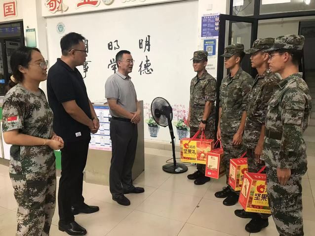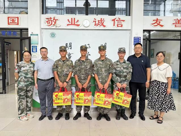 之后,智能技术学部电气与电子工程学院党总支书记、院长荆学东和副书记王震一起向承训官兵送上慰问品,感谢他们两周以来对学院2024级新生军训工作的付出,不畏酷暑辛苦带训,对他们科学施训和辛勤付出致以崇高敬意和衷心的感谢。希望接下来的军训汇报工作展现出学院新生的精神风貌。