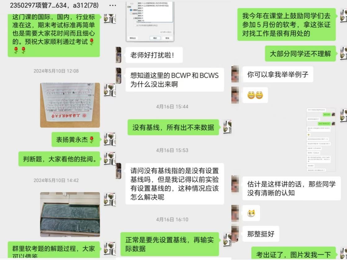在软件工程专业核心课程教学中,王老师主讲《软件项目管理与案例分析》《项目沟通管理》等课程,以“培养复合型人才”为目标,将授课内容与行业需求精准对接,结合PMP、软考认证考点拆解解题思路,鼓励学生参加,提升学生的就业竞争力。实验环节,她组织学生以小组为单位完成智能停车系统升级、项目成本管理平台开发等实战项目,严格按照项目管理规范推进,让学生在实践中掌握WBS工作分解、关键路径法等核心工具,实现技术实践与项目管理能力的双重提升。